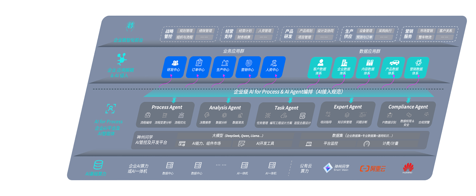 恒盛娱乐问学智车解决方案是一套基于AI技术的汽车行业智能化系统,,,,覆盖从底层算力到顶层AI应用的全栈方案。。。。方案由算力层、、、、模型层和应用层组成:算力层,,,方案支持多种一体机配置,,具备云端灵活部署、、、、多云适配以及动态优化计算资源的能力;模型层,,,恒盛娱乐问学平台版提供了企业级AI应用一站式构建与管理平台,,,,支持基于后训练强化技术的汽车企业专属模型的训练、、、、评测和运营;应用层,,恒盛娱乐问学DeepSeek版提供包括超级员工、、智能招采、、智能营销、、、、智能客服、、AI for BI等一系列解决方案,,,可助力汽车行业实现数字化转型,,让管理更智能、、、响应更敏捷。。。