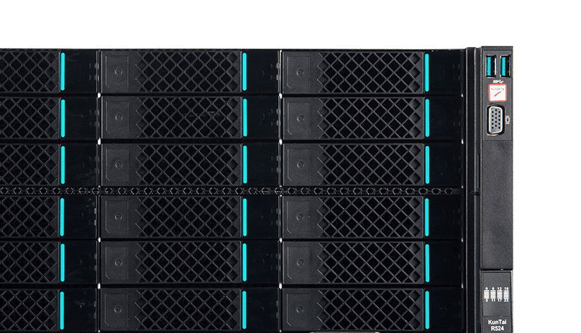 KunTai R524 存储型服务器是恒盛娱乐数码基于鲲鹏处理器推出的新一代 ARM数据中心服务器。。。。主要面向存储业务,,具有海量存储、、高性能、、、低功耗以及易扩展的特点,,,,适合为大数据分析、、、软件定义存 储等应用场景的工作负载进行髙效加速。。。
